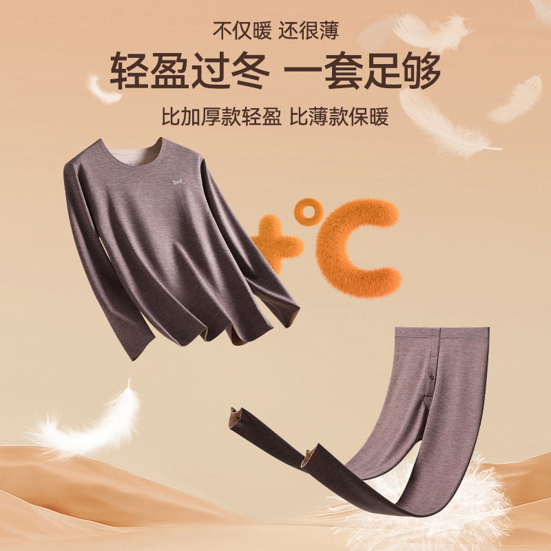猫人德绒保暖内衣男士无痕加绒加厚发热打底秋衣秋裤套装男款冬季