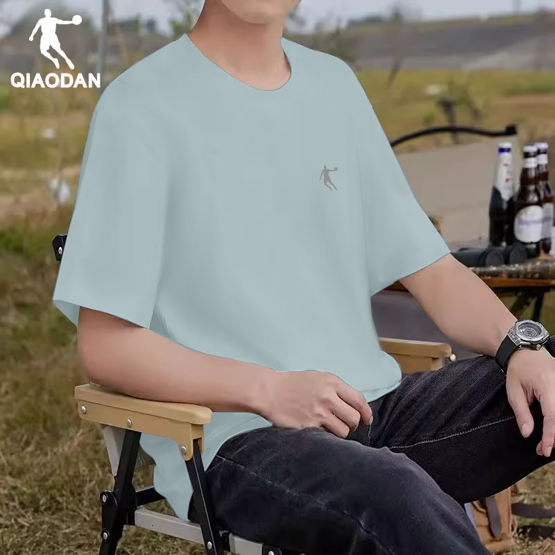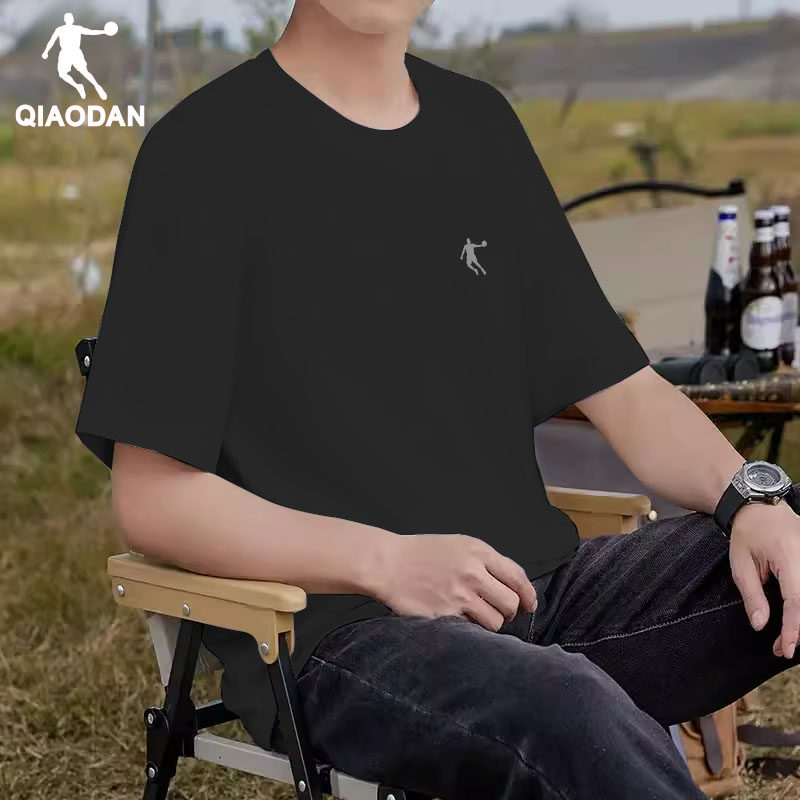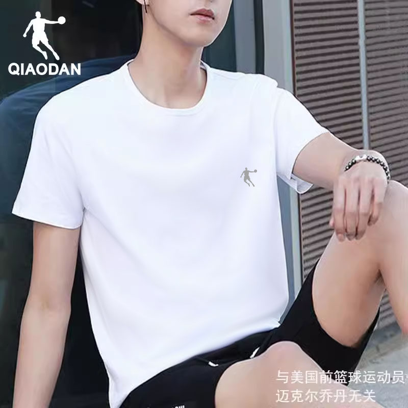 乔丹短袖t恤男2025新款夏季男士衣服宽松大码白色圆领防晒冰丝t恤