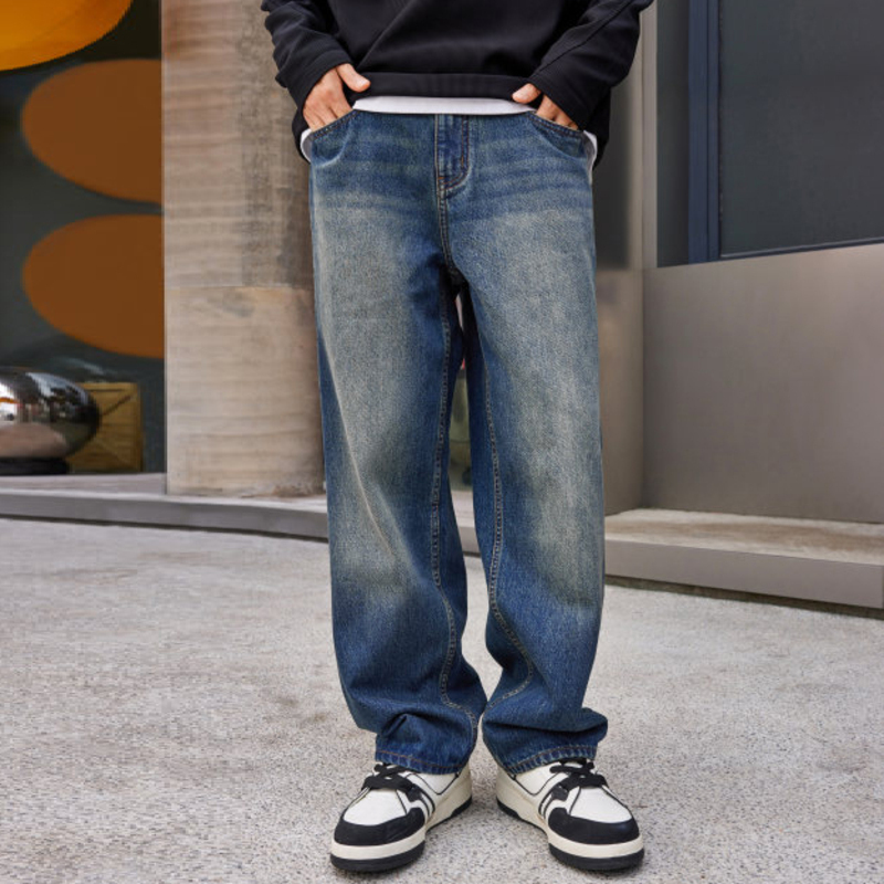 GXG男装[新尚] 复古水洗牛仔裤宽松微阔腿牛仔裤休闲裤 春季新品