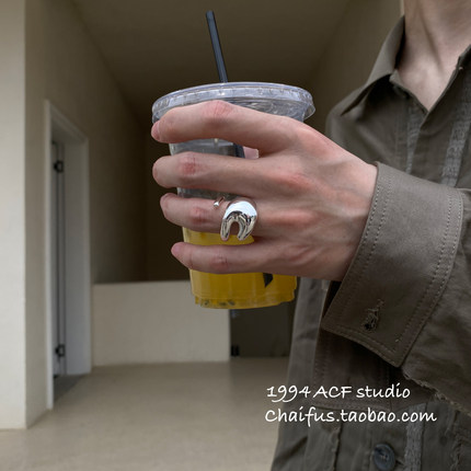 柴夫工作室/J383 欧美嘻哈风线条缠绕金属戒指简约中性设计开口