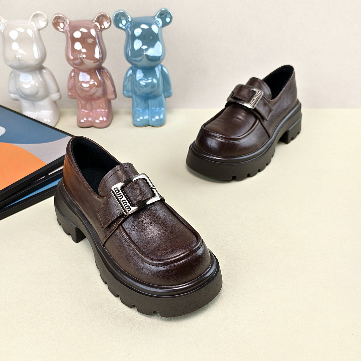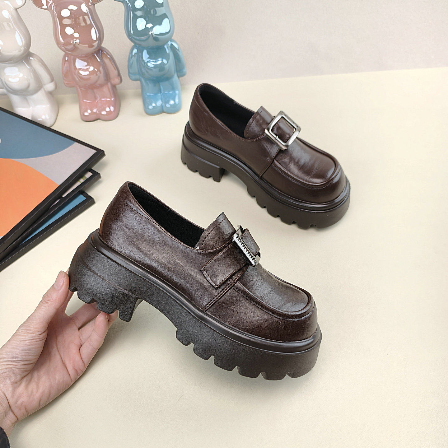 英伦圆头厚底高跟百搭乐福鞋女2025新款魔术贴时尚轻便网红小皮鞋