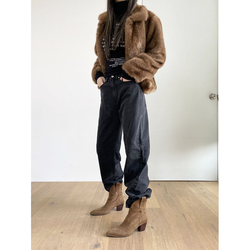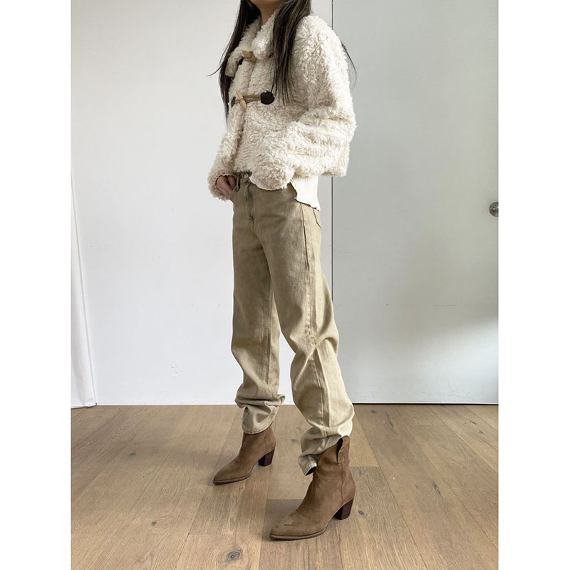 韩国棕色绒面牛仔靴女西部靴