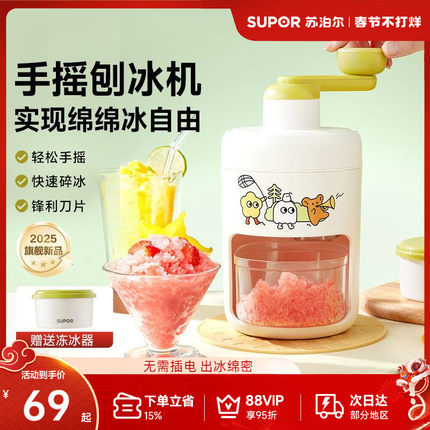 苏泊尔刨冰机家用小型手摇碎冰机儿童生日礼物不插电摆摊沙冰机