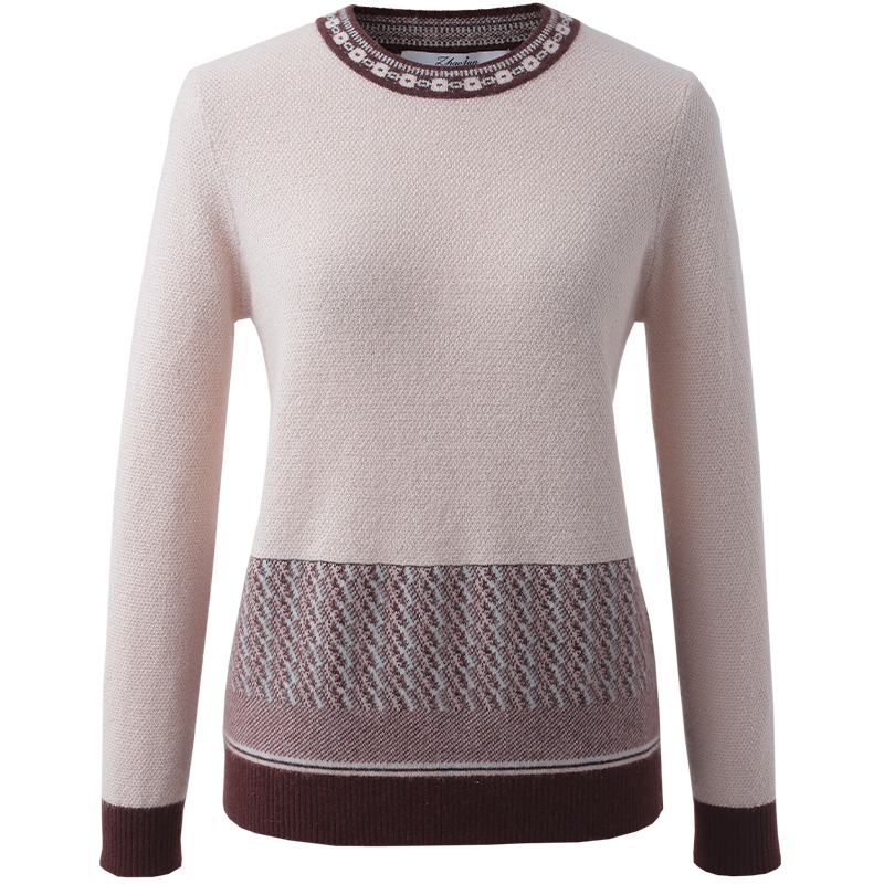 兆君秋冬古典元素提花圆领羊绒衫女 偏厚休闲外穿毛衣针织衫