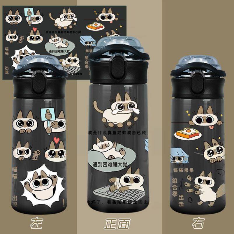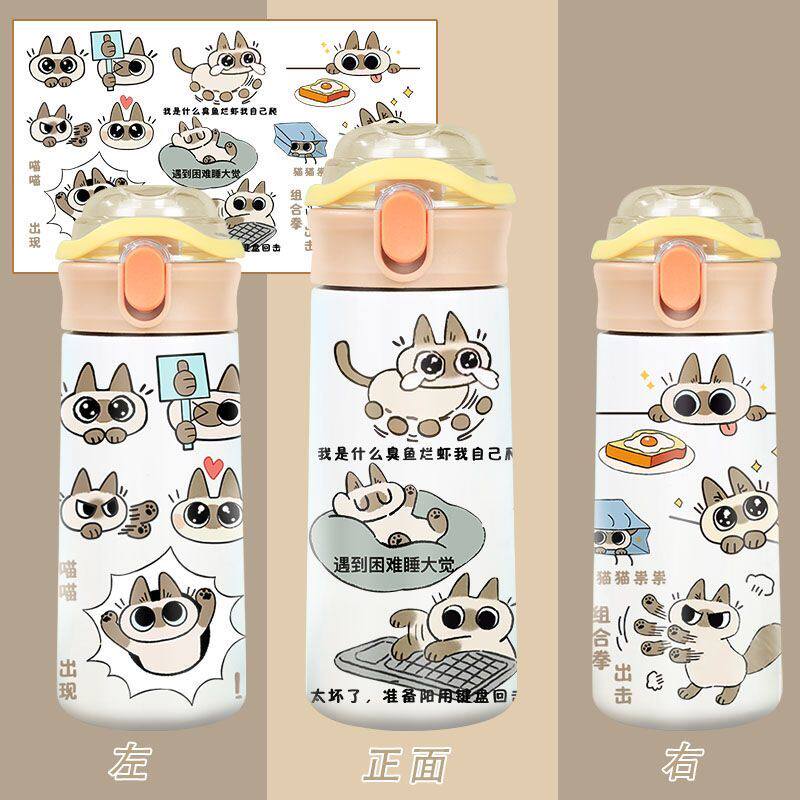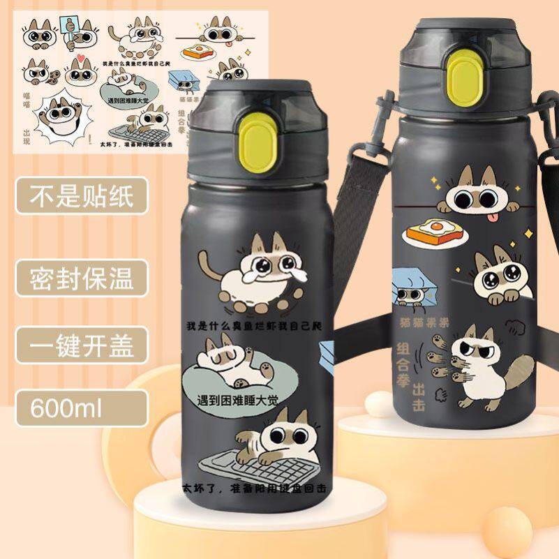 暹罗猫逻辑猫水杯小豆泥可爱猫猫男女学生不锈钢保温杯大容量杯子