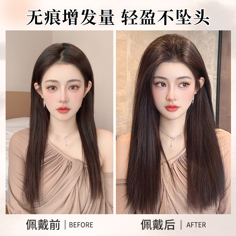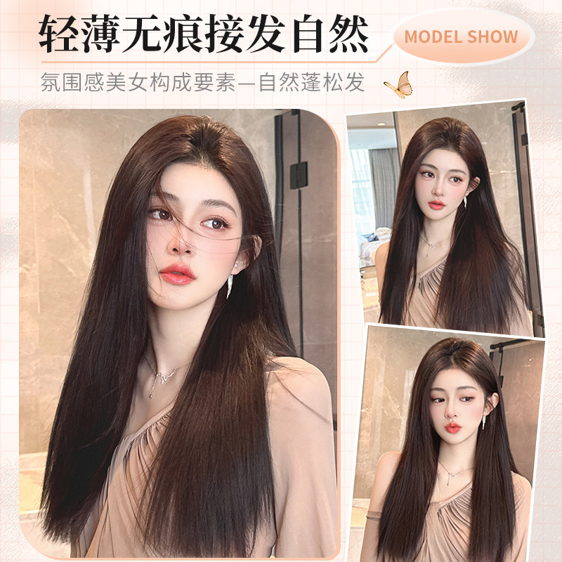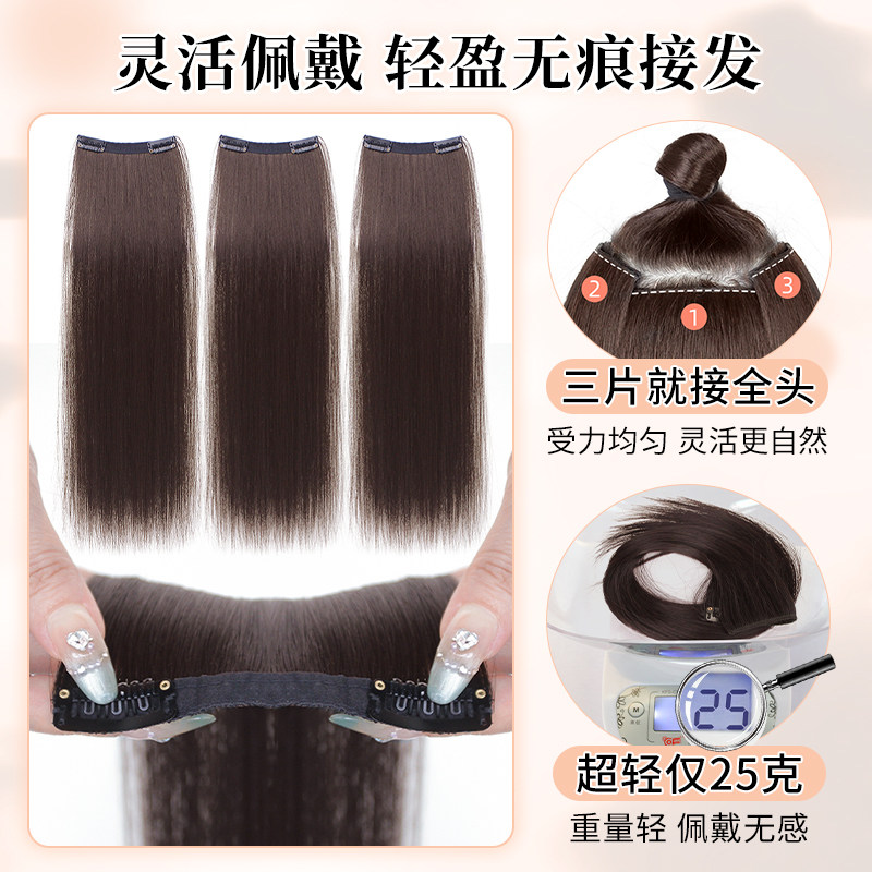 超轻薄假发片三片式无痕隐形羽毛接发片自然蓬松增发量仿真长直发