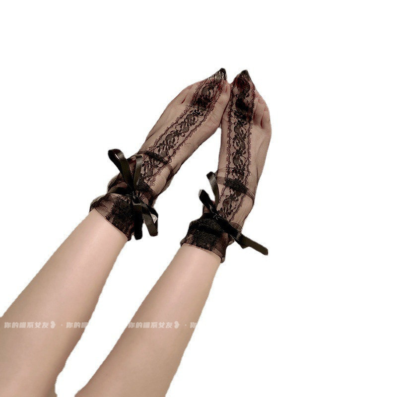 日系软妹lolita足控撩汉性感蕾丝网纱黑丝系带透明水晶薄纱白丝袜