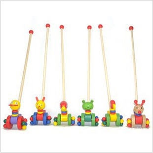 儿童益智玩具推杆小鸭子推车卡通动物推车木制小推车混款学步玩具