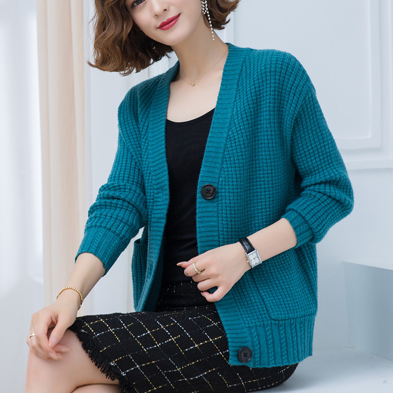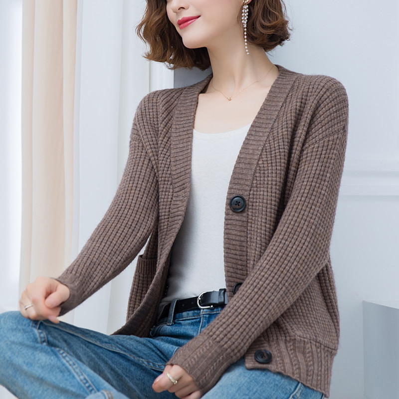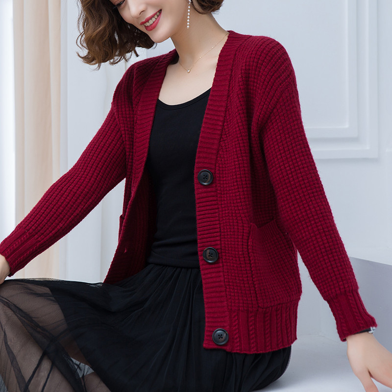 中年春装针织开衫女外搭2021新款上衣外穿妈妈装V领羊毛衫外套薄