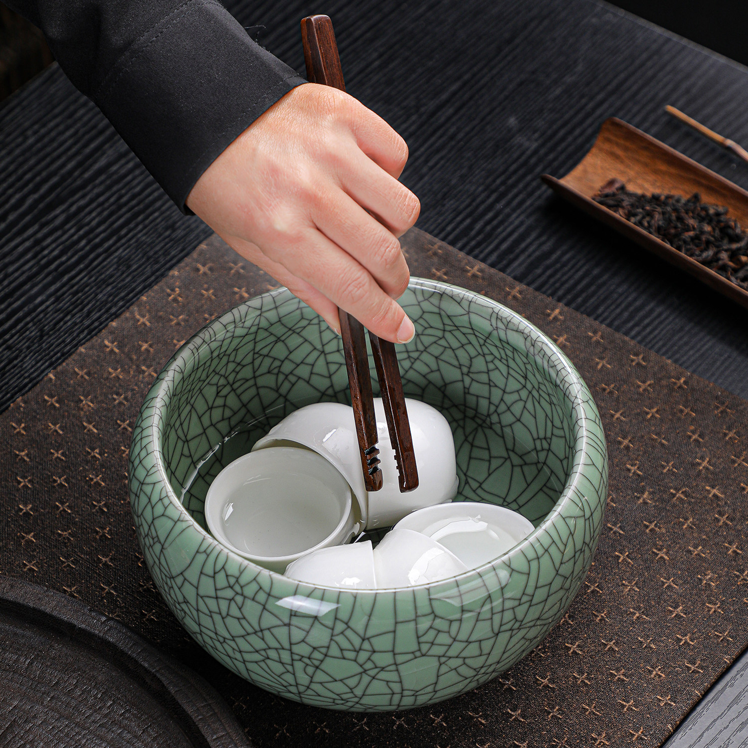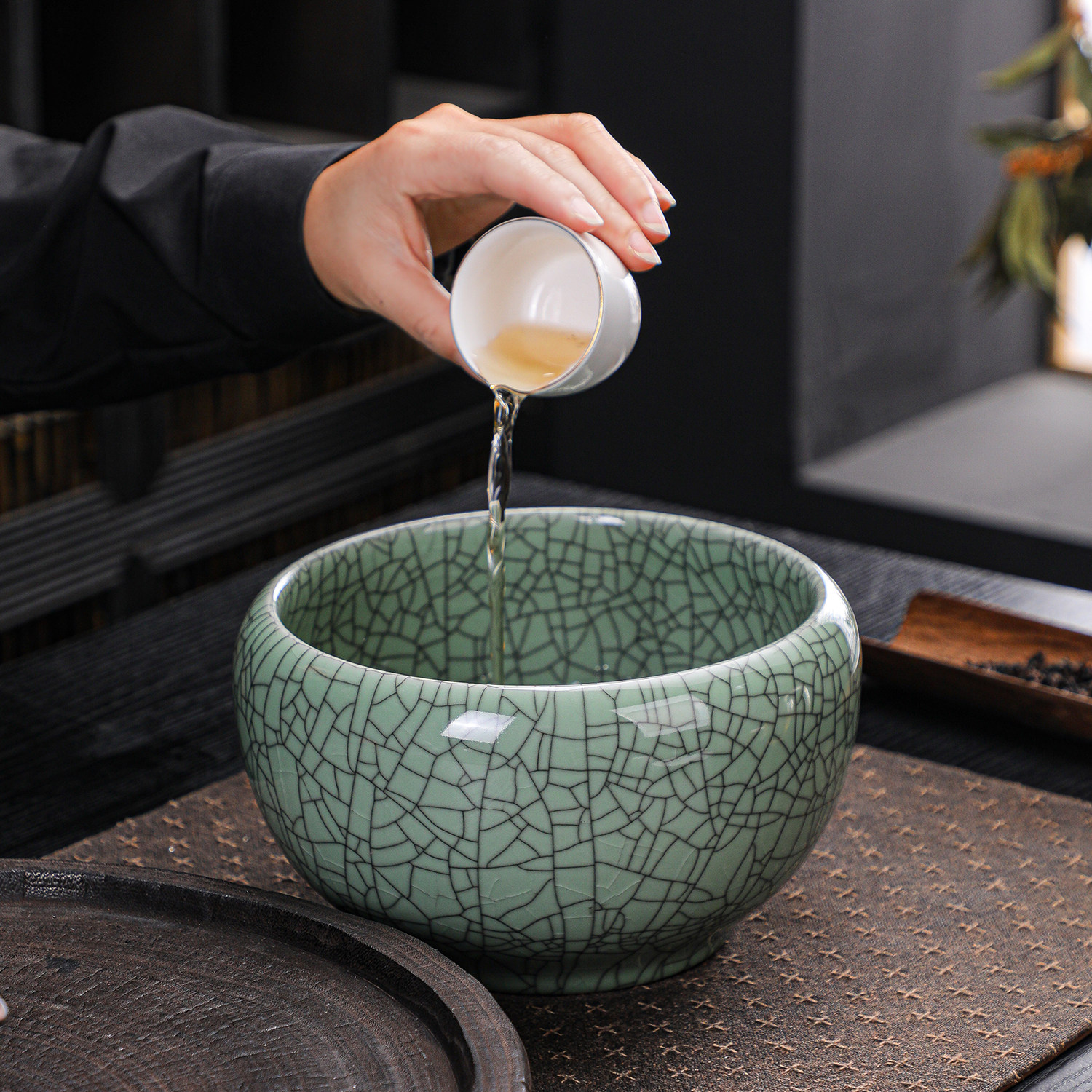 哥窑开片茶洗盆特大号茶渣缸大容量陶瓷建水功夫茶具茶道零配水孟