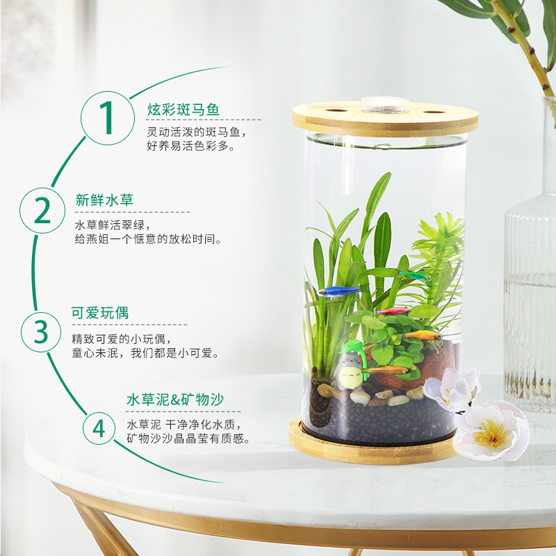 生态瓶水草小鱼缸玻璃办公桌面微景观生日情侣礼物DIY作业免换水