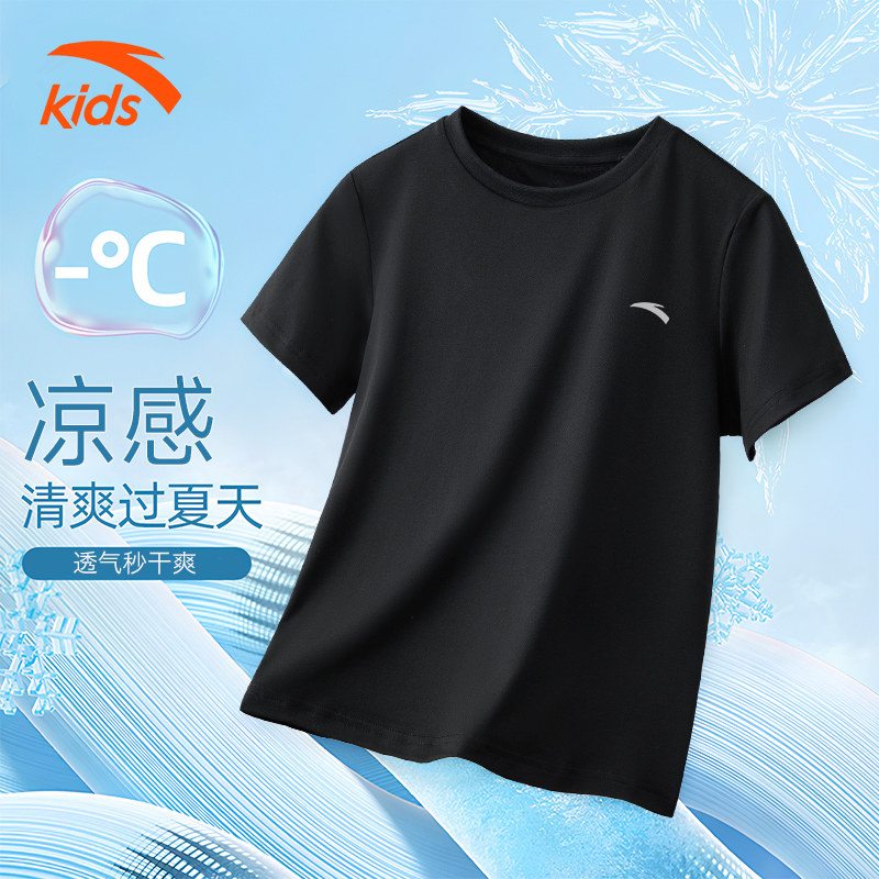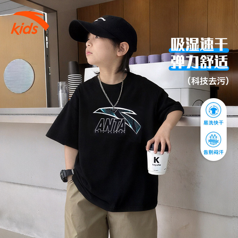 安踏儿童短袖T恤新款男童圆领纯棉夏季童装大童运动透气男孩半袖