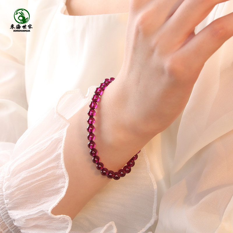 紫牙乌石榴石手链女散珠子吊坠水晶玛瑙紫红色项链吊坠石榴石手串