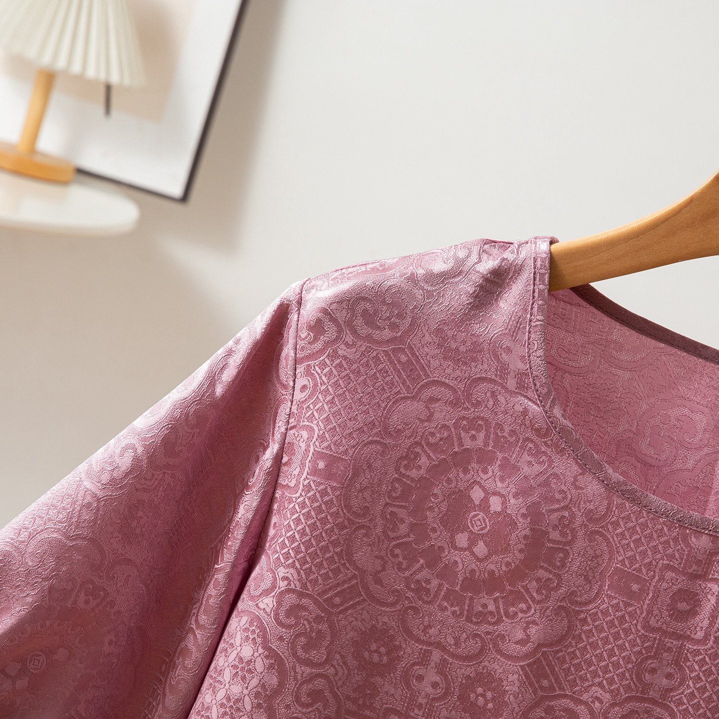 通勤夏季真丝花萝宝相花T恤女桑蚕丝燕尾显瘦圆领短袖纯色文艺