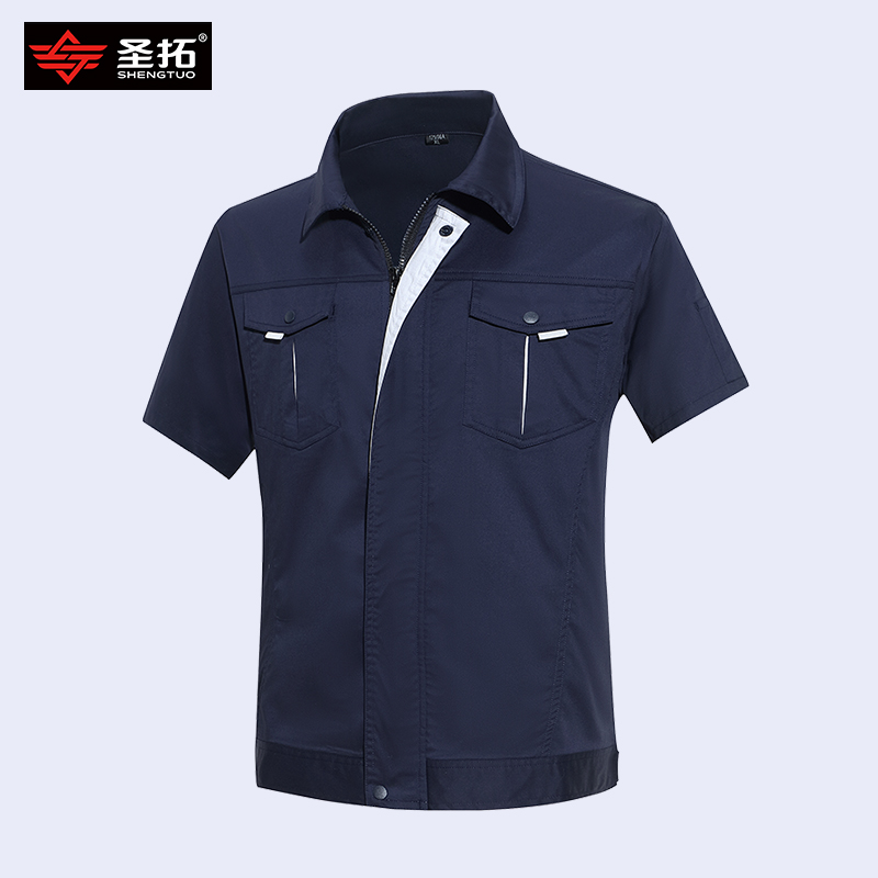 夏季弹力薄款工作服套装男耐磨汽修车间厂服短袖劳保服透气工装