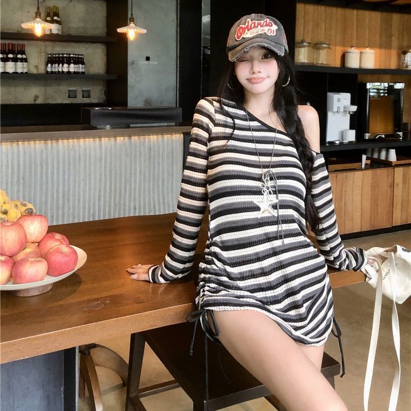 ins慵懒风条纹长袖防晒罩衫分体比基尼三件套游泳衣韩国辣妹夏季