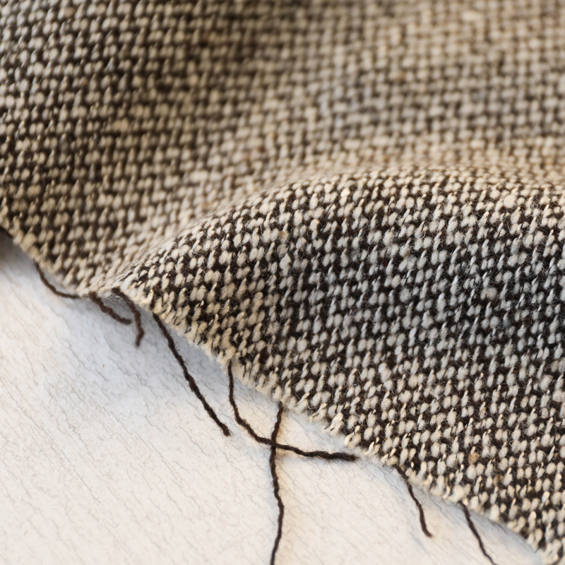 日本进口薄款复古米白咖色交织编织粗纺羊毛面料设计师布料