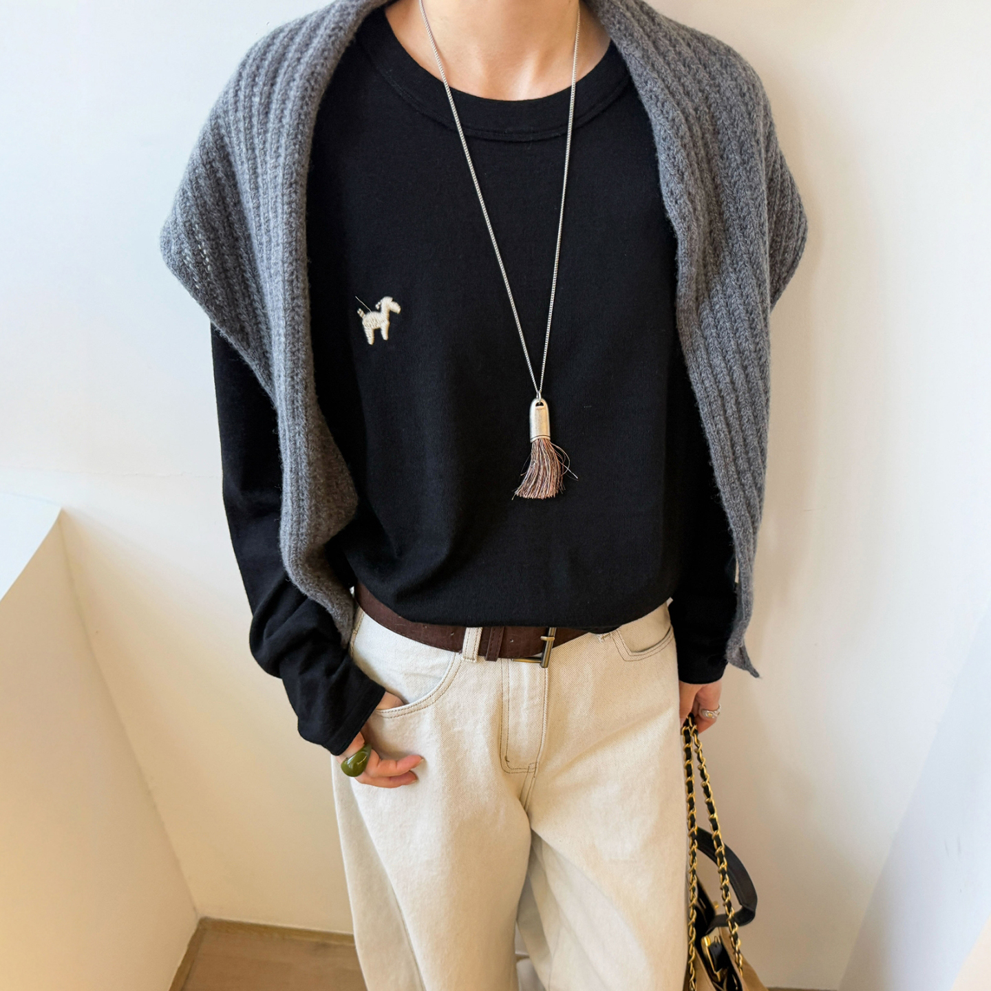 小羊刺绣细羊毛针织衫女欧洲站2025秋装新款欧货女装毛衣打底衫潮