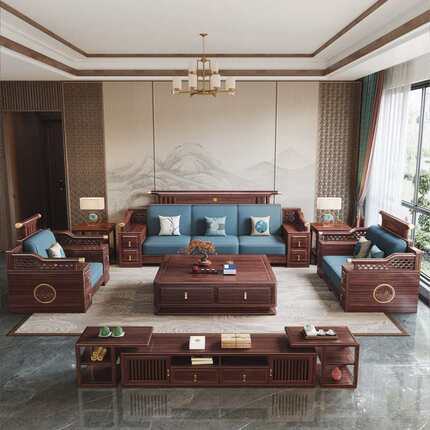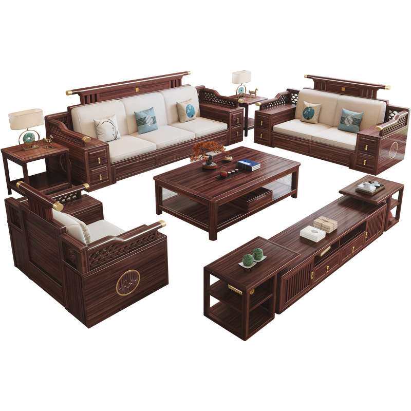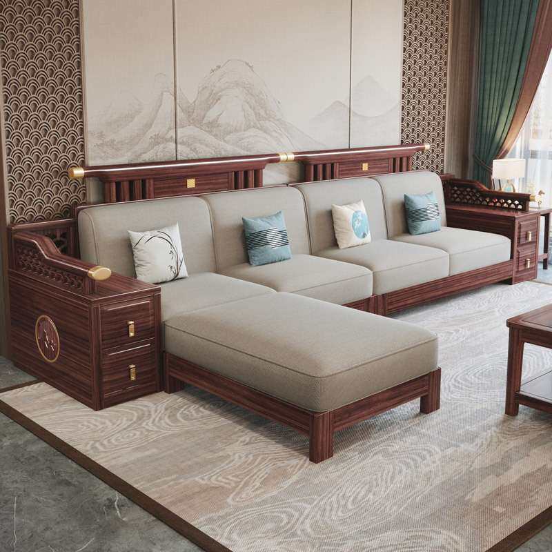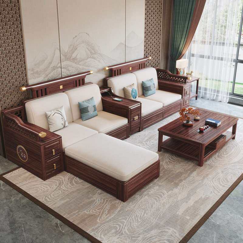 新中式全实木沙发乌金木实木沙发组合家用简约储物木沙发客厅家具