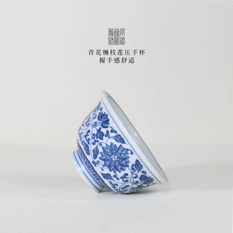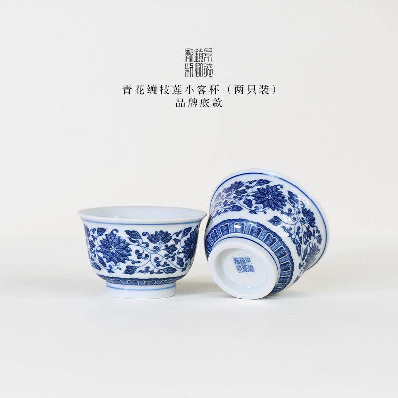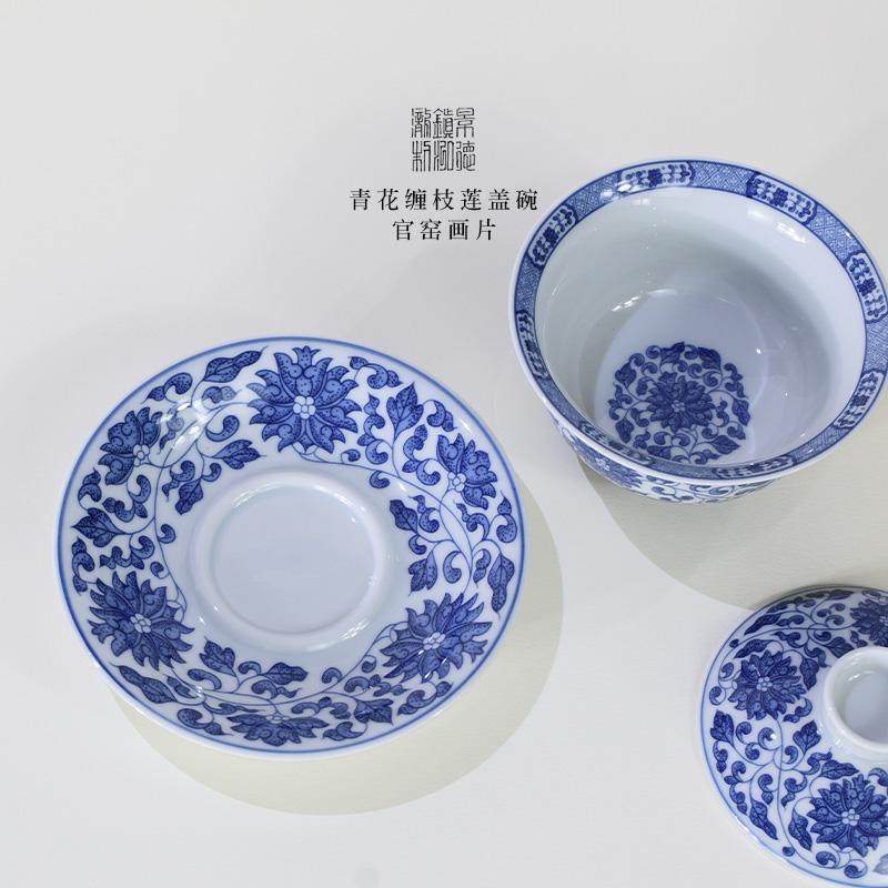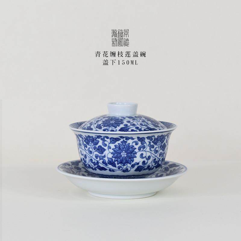 景德镇青花缠枝莲盖碗茶杯四件套礼盒装高档家用青花瓷茶具套组
