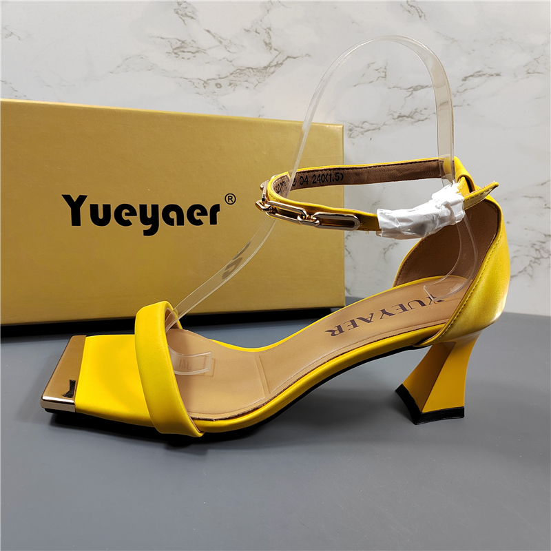 月芽儿专柜正品时尚百搭露趾高跟鞋女2025夏季新款粗跟一字带凉鞋
