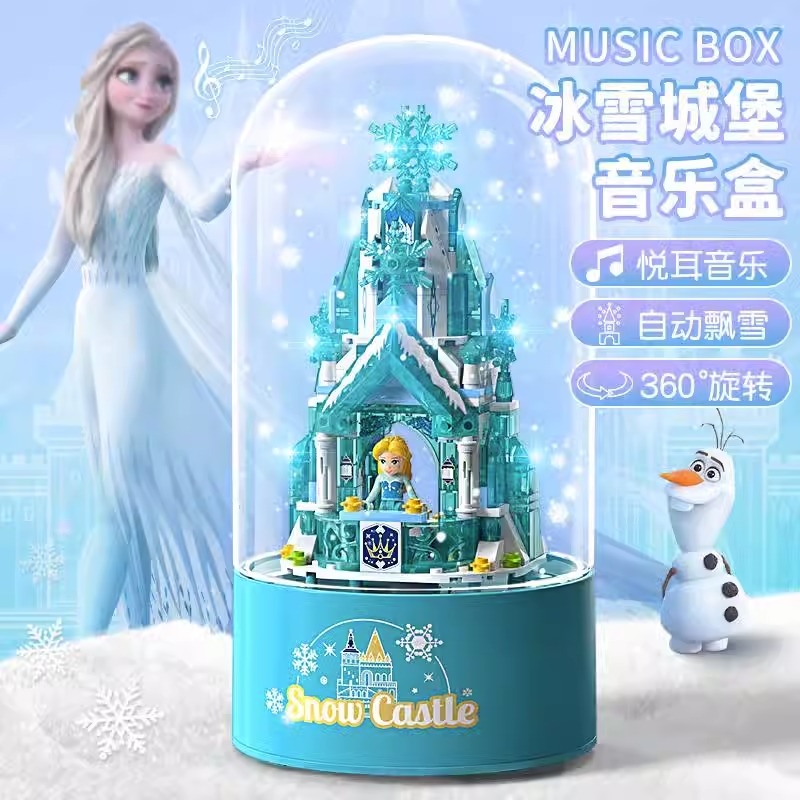 圣诞积木拼装艾莎冰雪奇缘城堡爱莎八音乐盒儿童女孩系列生日礼物