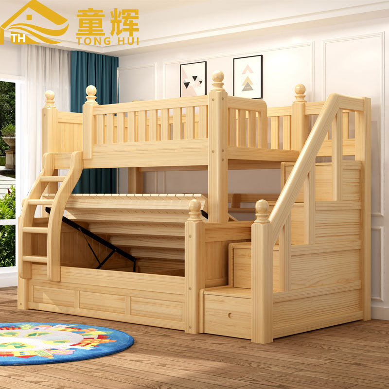 实木床上下铺儿童床高箱床上下床双层床子母床高低床子母床储物床