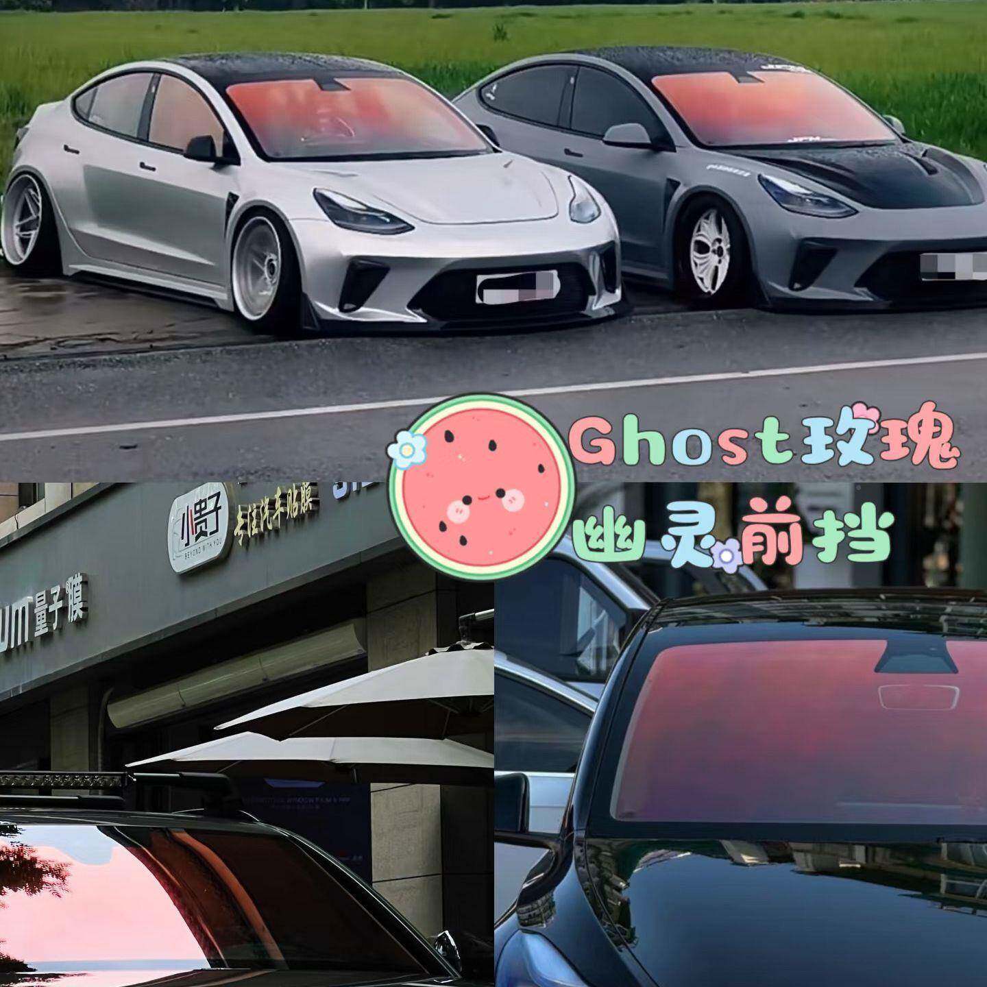 太阳幽灵玫装玻璃贴膜包安晒防隔热炫彩光学膜瑰汽车前701挡风玻