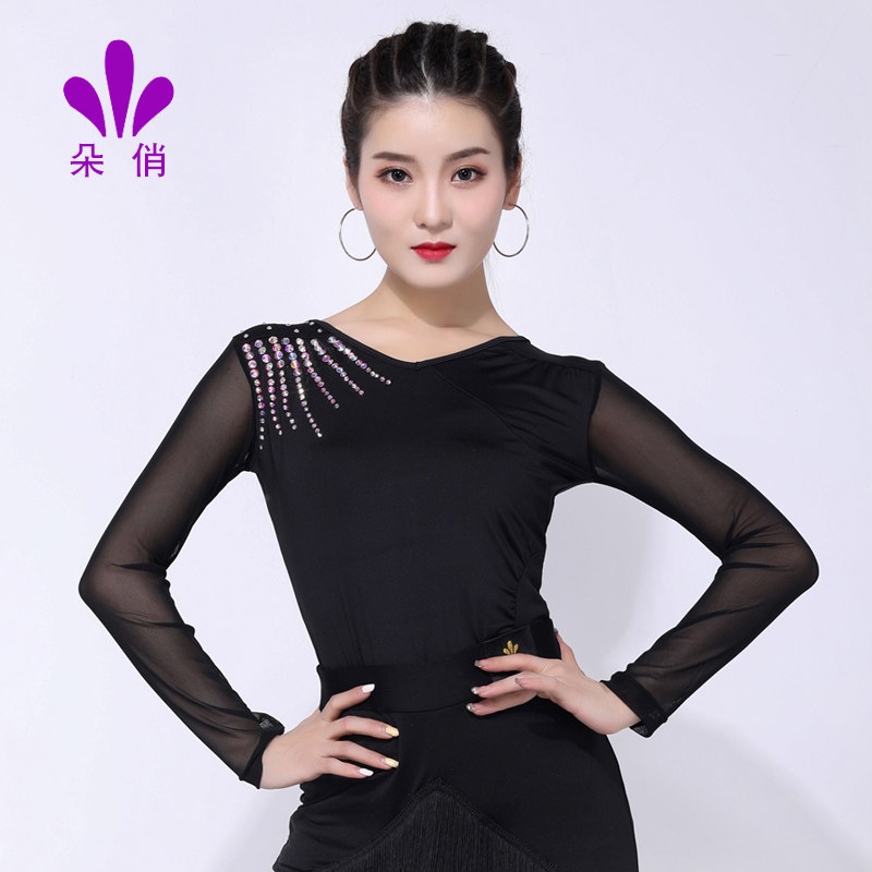 朵俏拉丁舞上衣女成人新款练功服国标舞表演摩登舞蹈服装秋季长袖