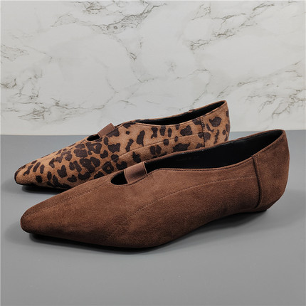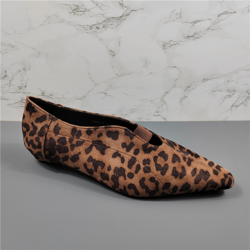 品牌女鞋豹纹尖头平跟女单鞋