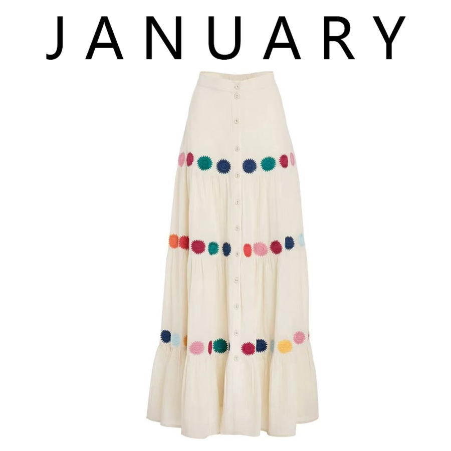 JANUARY 法式复古印花刺绣花朵半身裙女小个子高腰显瘦气质中长裙