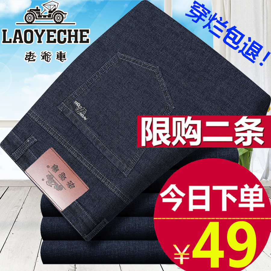 老爷车牛仔裤秋冬厚款青中年弹力直筒休闲裤男裤男士宽松免烫裤子