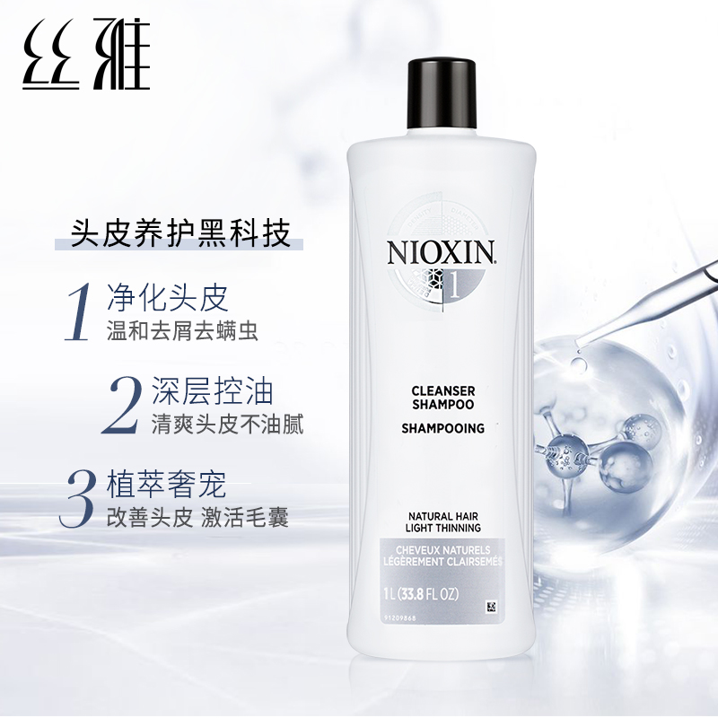 美国NIOXIN丽康丝1号2号洗发水进口男女防掉脱发无硅油控油蓬松