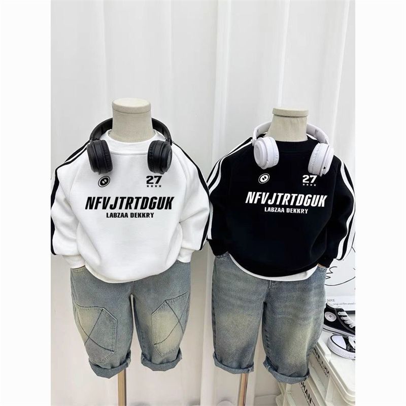 NASA男童炸街叠穿潮牌卫衣小中大童三条杆插肩加厚婴儿绒高端卫衣