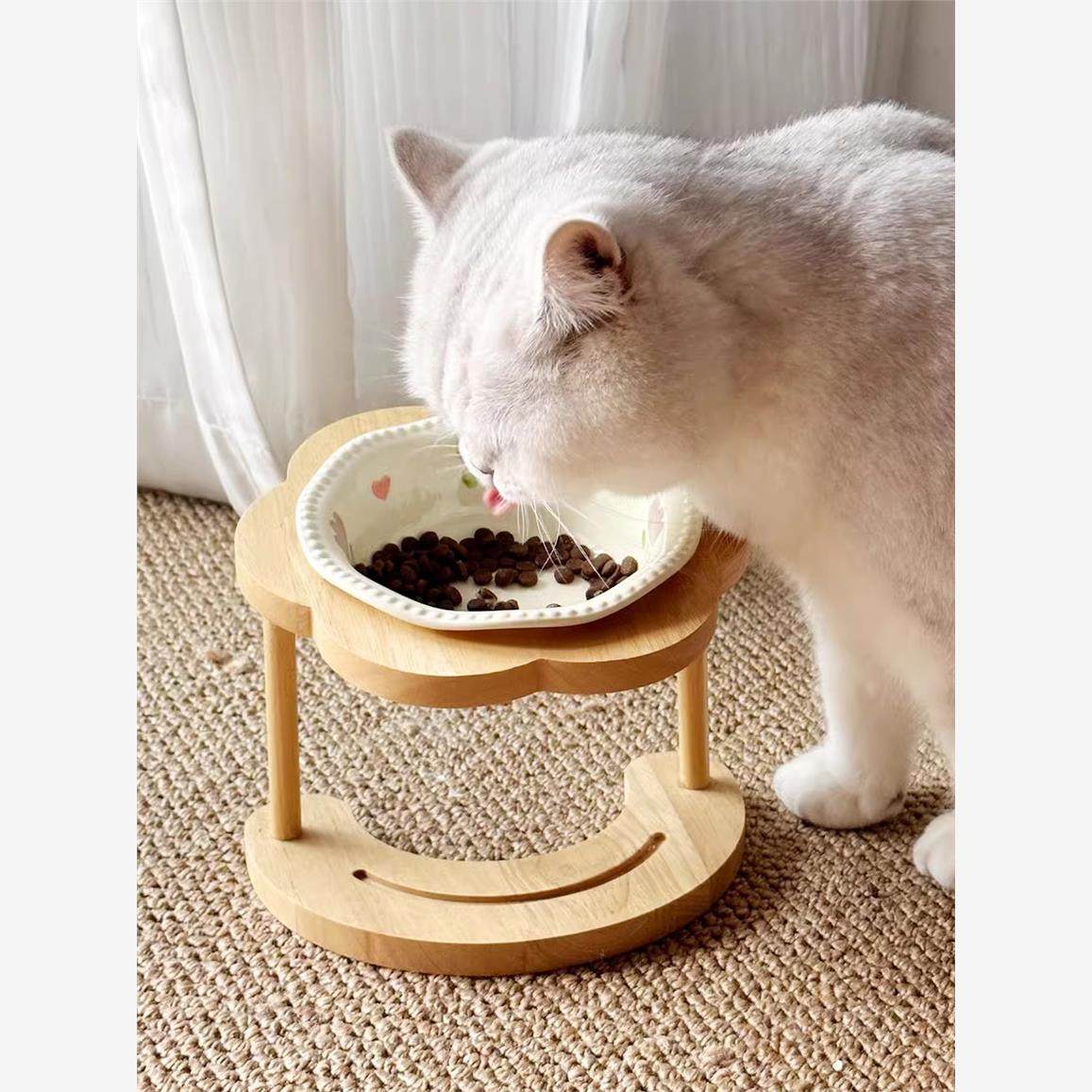 猫碗陶瓷高脚木架斜口保护颈椎狗碗狗食盆不易打翻宠物水碗增高架