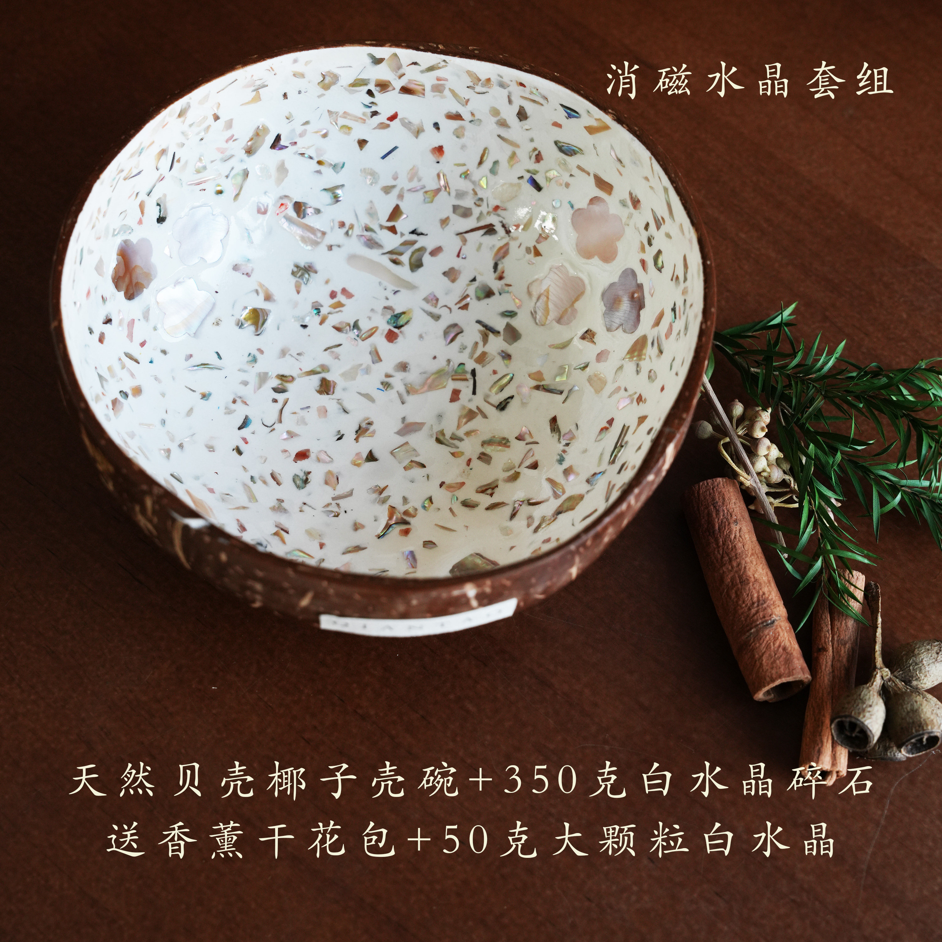 QIANTAO天然高品质白水晶原石手串消磁碎石手链净化消磁碗套组