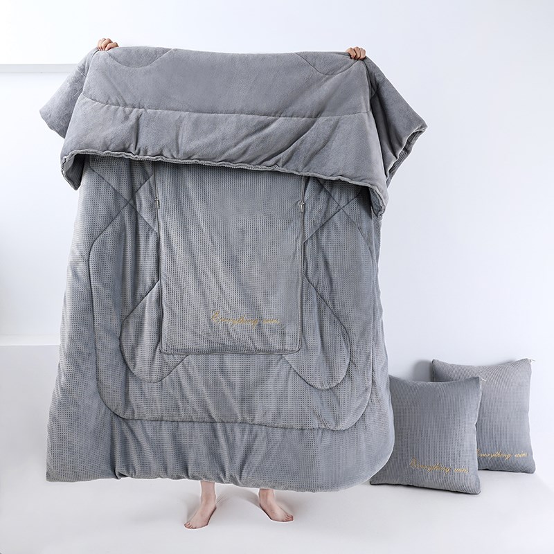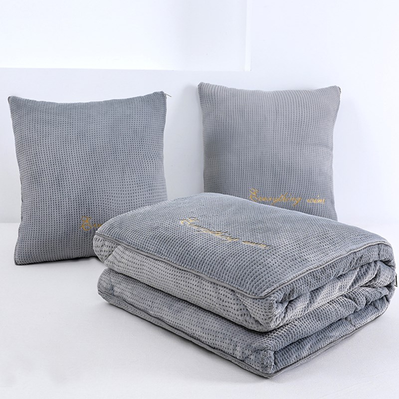 男士纯色抱枕被子两用冬季加厚午休毯办公室车载枕头沙发靠垫简约