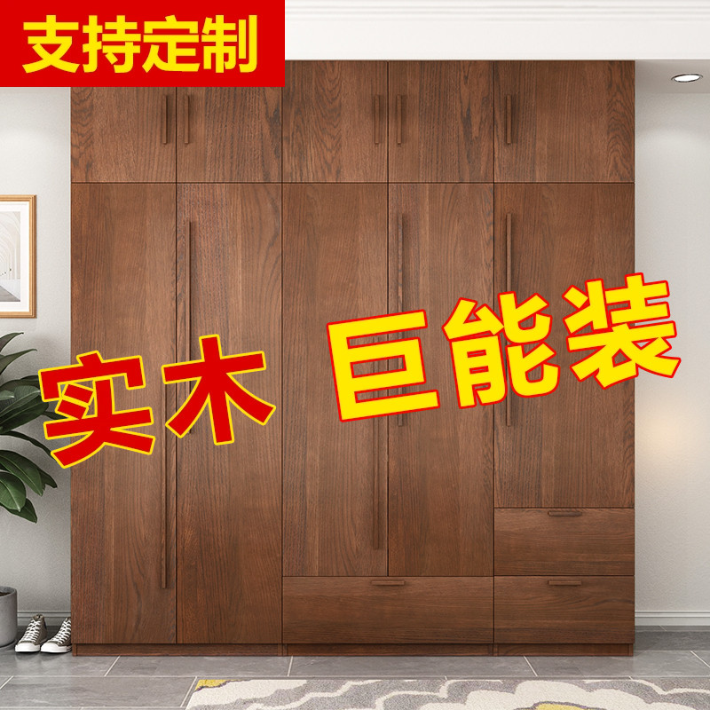 实木衣柜现代简约北欧卧室家用经济大容量衣橱收纳储物柜新款定制