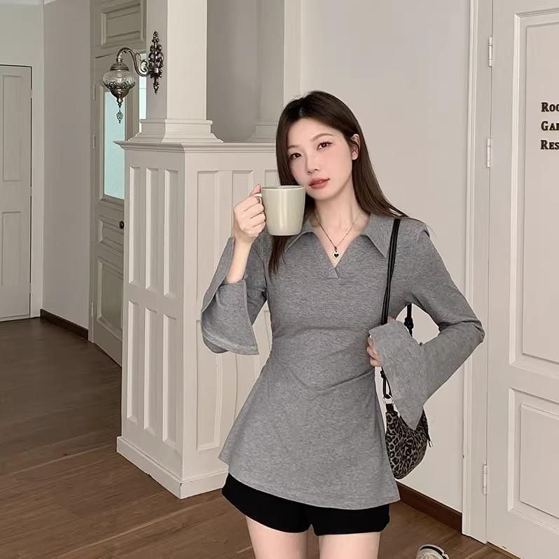 大码微胖休闲长袖T恤女装秋季Polo领打底衫胖MM300斤遮肉显瘦上衣