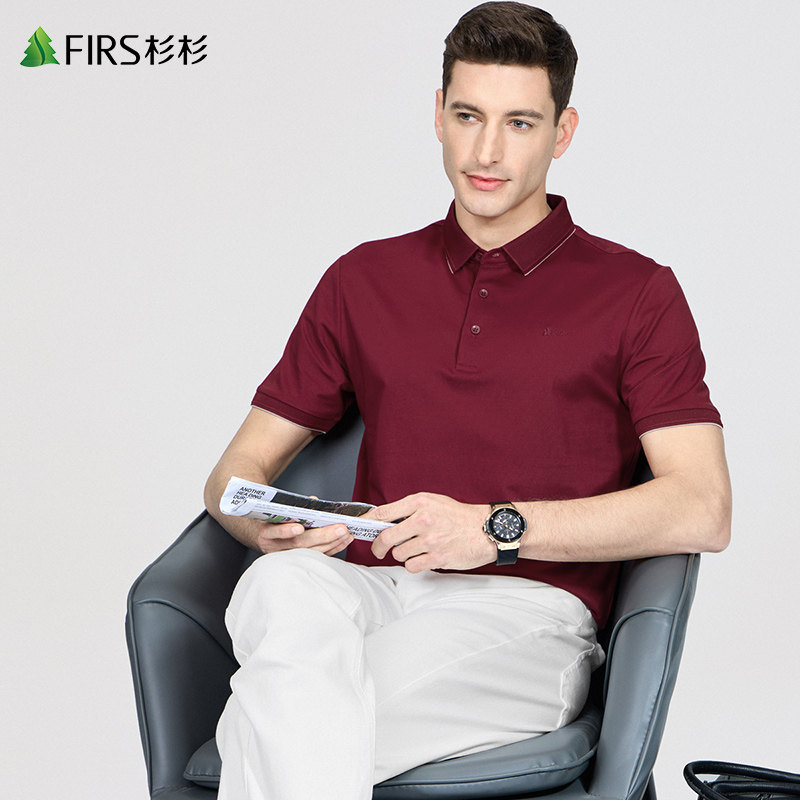 【挑孔翻领】杉杉棉感短袖T恤男