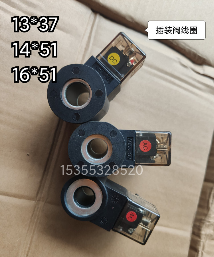 插装阀电磁阀线圈内径内孔13mm/14mm/16mm AC220V DC24V 110V铜线