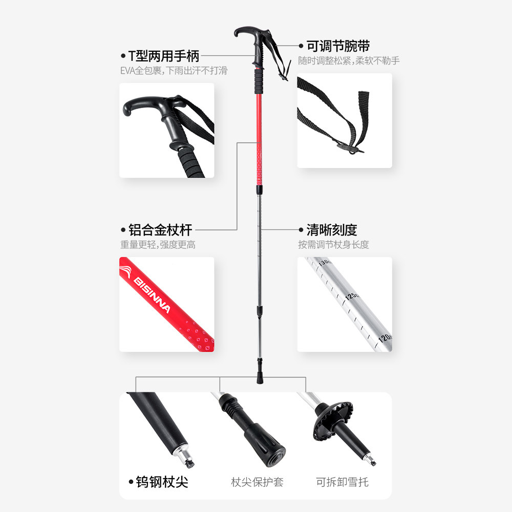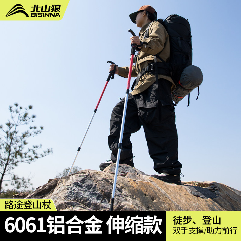 北山狼户外登山杖手杖铝合金超轻伸缩男女徒步登爬山轻便拐杖手杖