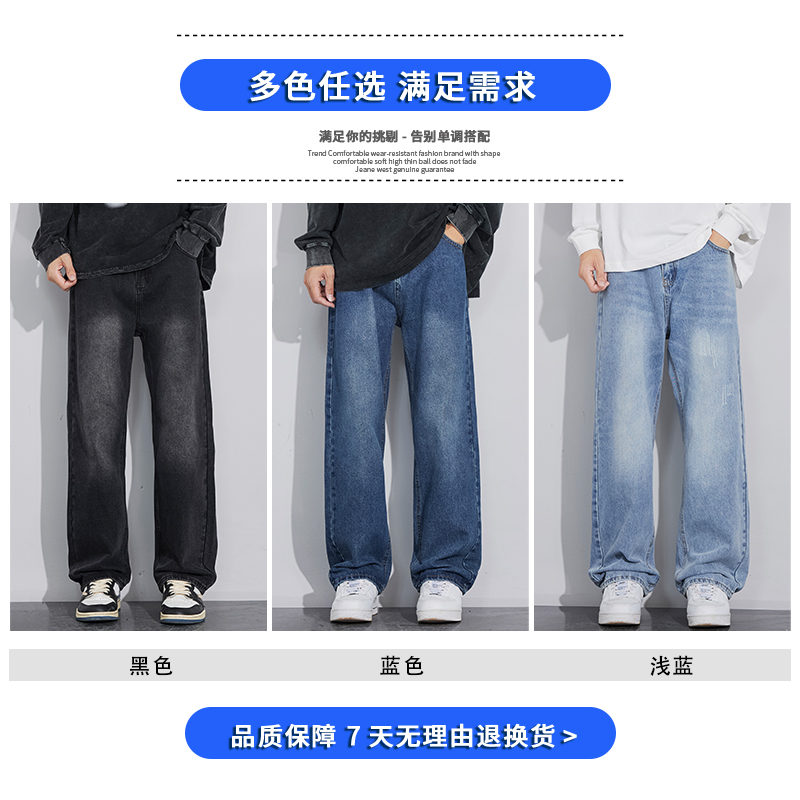 KZH真维斯高端牛仔裤男秋季新款宽松直筒裤青年潮牌轻奢休闲长裤