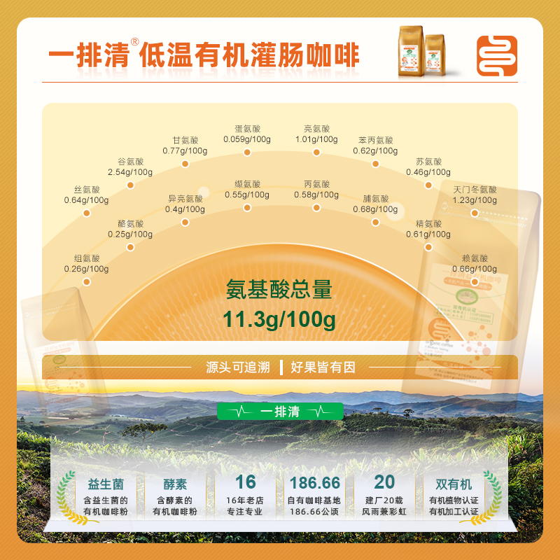 拍5发6一排清低温有机灌肠咖啡粉清洗肠清宿便肠毒垃圾安利灌肠液