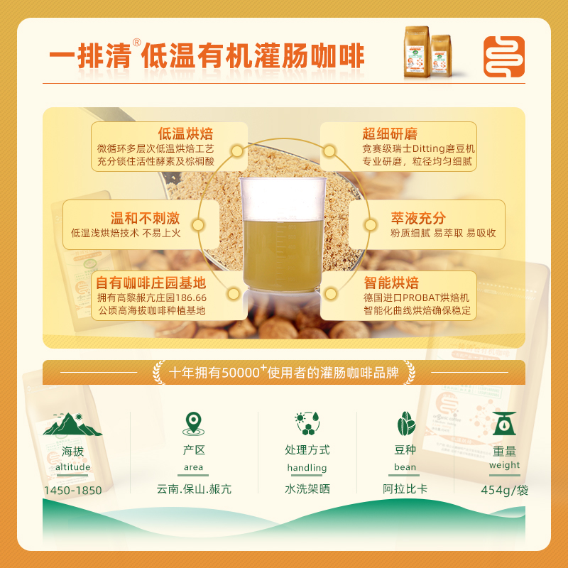 拍5发6一排清灌肠有机咖啡粉454g