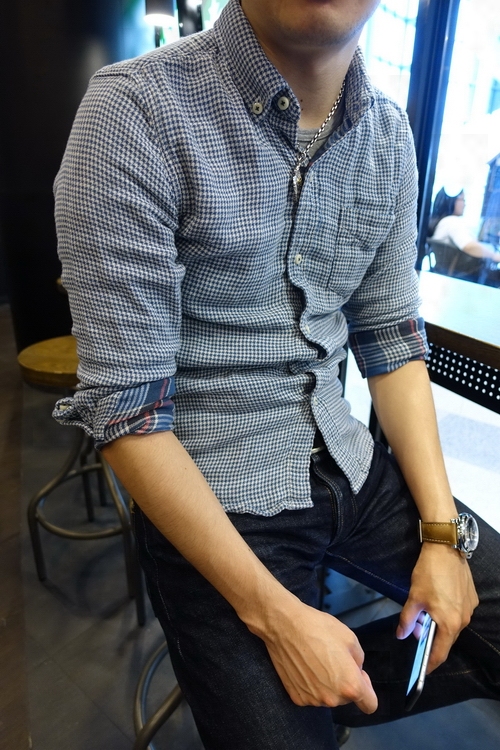 小溪秋冬新款衬衫男士长袖修身千鸟纹格子纯棉衬衣日系商务休闲潮