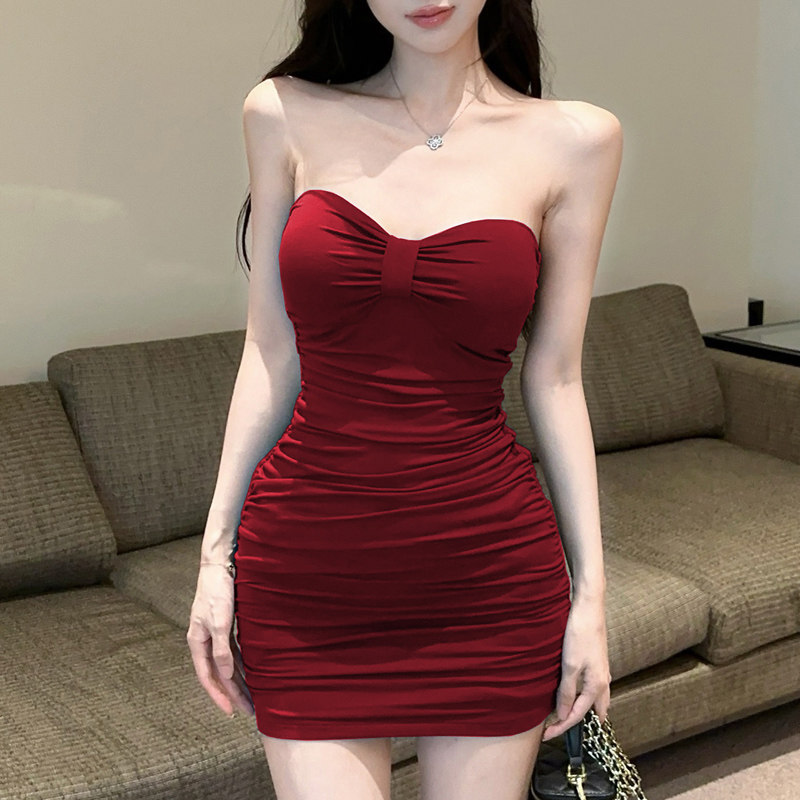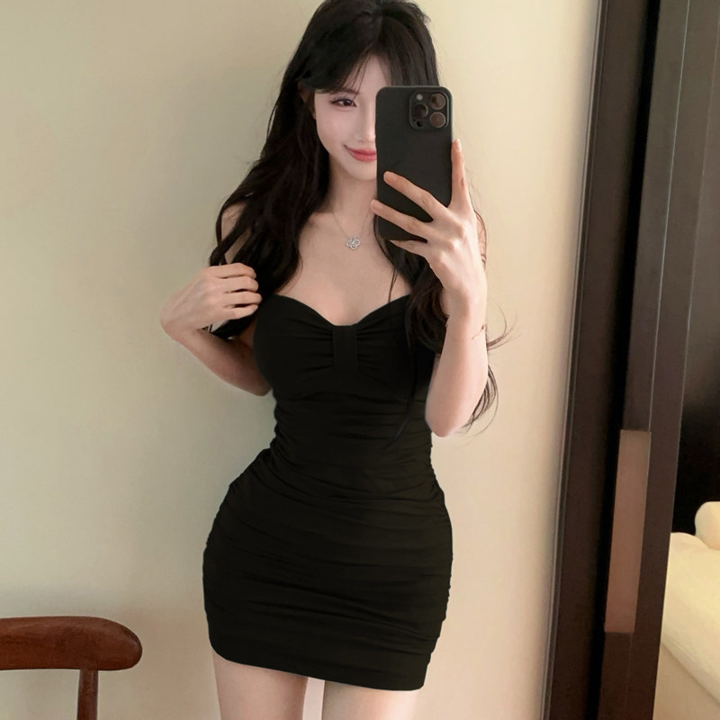 法式黑色抹胸连衣裙女小个子气质修身显瘦收腰绝美超好看无袖短裙