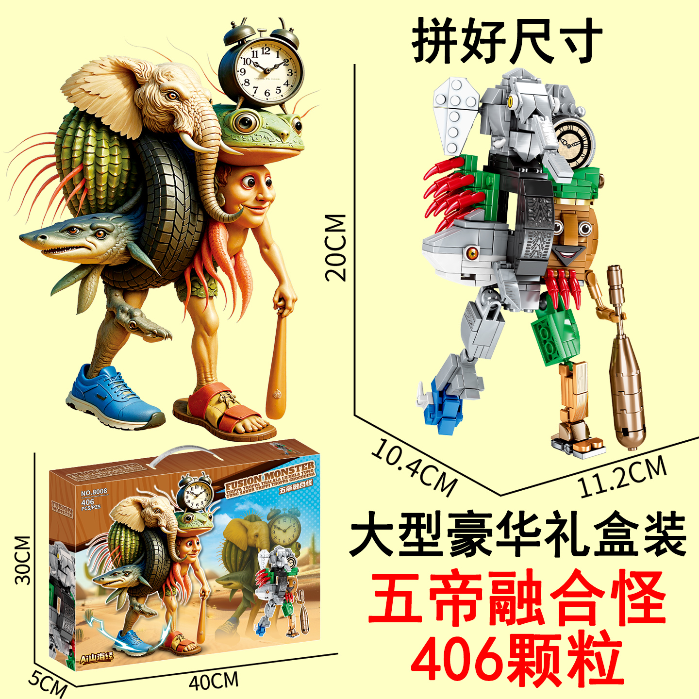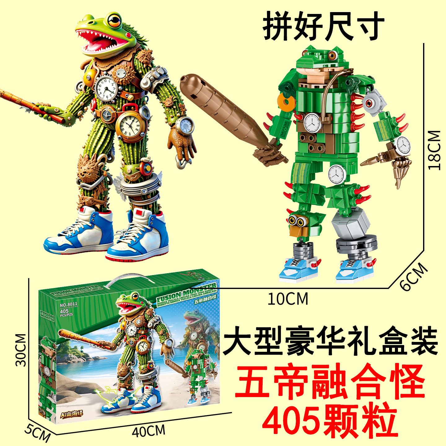 爆款外国ai山海经五帝融合怪物积木玩具模型通通通木棍人轮胎青蛙