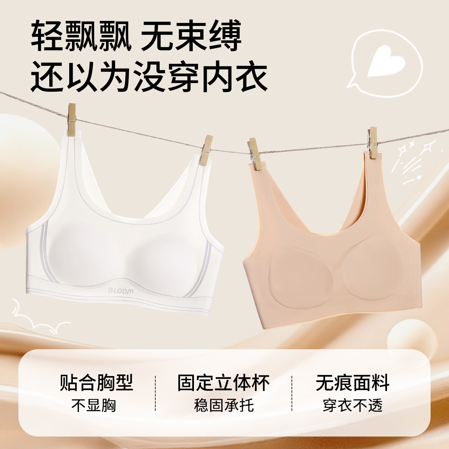 初中女生内衣发育期固定杯学生青少年高中运动背心少女文胸女大童