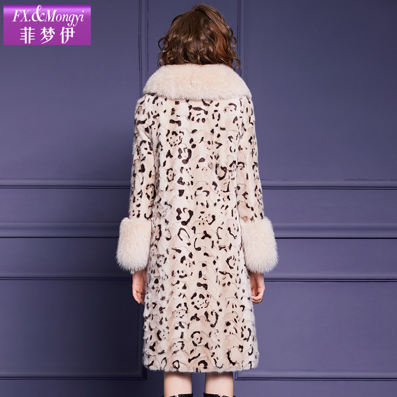 菲梦伊真毛领水貂毛皮草外套女冬季高品质加厚中长款白鸭绒羽绒服